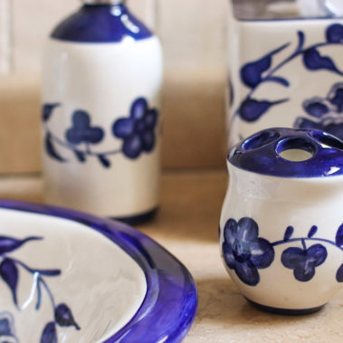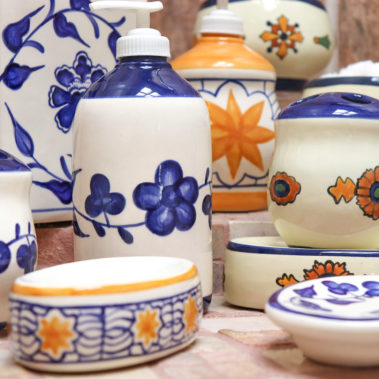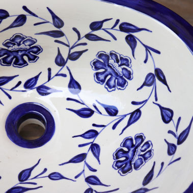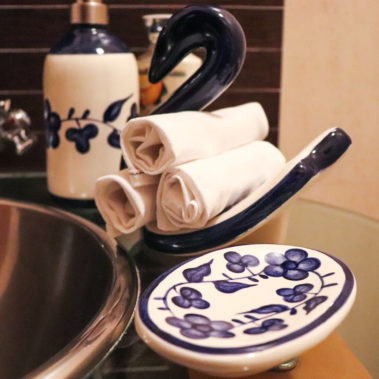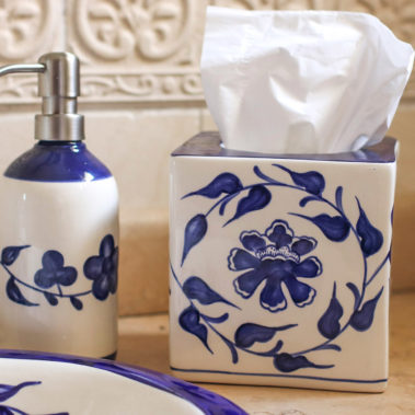 The signature flowers and vines of the Capuchinas Collection are inspired by Antigua’s native flowers. Also adorning this collection are the arches and semicircles and other flourishes in the design of the Capuchinas Convent. In this collection you will find sinks, tile borders and corners, soap dishes, soap dispensers, tissue holders, and brush holders.